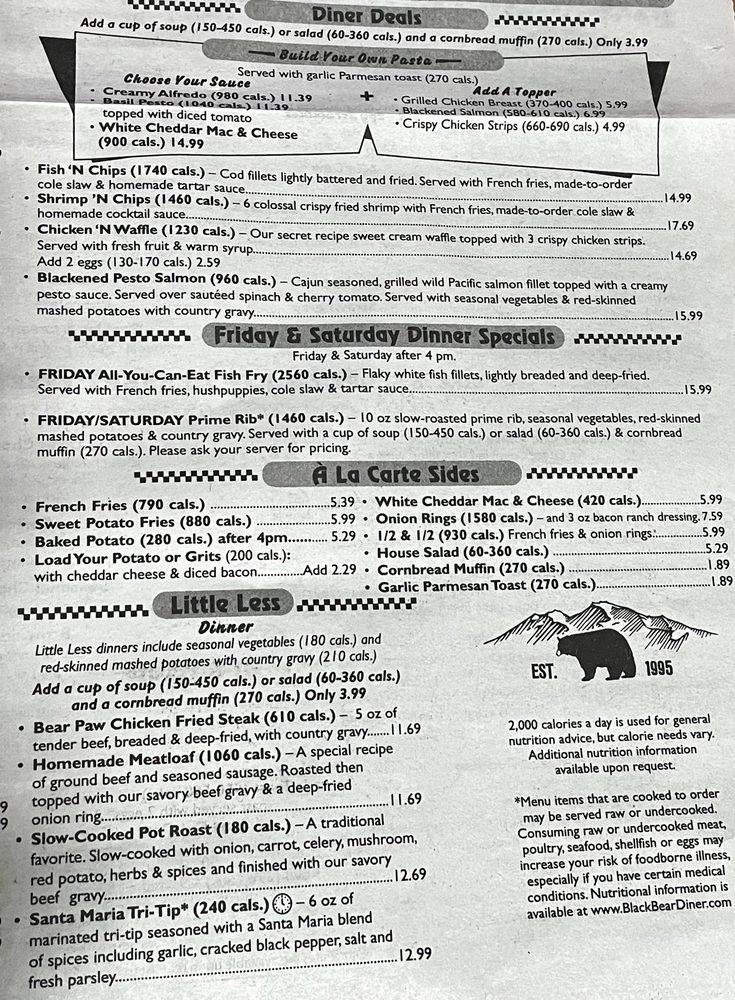 Introducing the menu at Black Bear Diner - Downey, where you can indulge in a variety of delicious options. From the Hungry Bear Breakfasts featuring hearty dishes like The GRIZZ and BIGFOOT Chicken Fried Steak to Pancakes, Waffles & French Toast for a sweeter start to your day. Don't miss out on the Bear's Choice selections to customize your meal just the way you like it. Customer reviews praise the quality of food, friendly service, and cozy atmosphere. With a diverse menu, attentive staff, and a welcoming ambiance, Black Bear Diner - Downey promises a delightful dining experience. So whether you're craving a classic breakfast or a comforting dinner, this restaurant is a must-visit spot in Downey, CA.